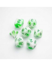 Conjunto de 7 dados de resina de primera calidad y con tono verdosos que brillan en la oscuridad
