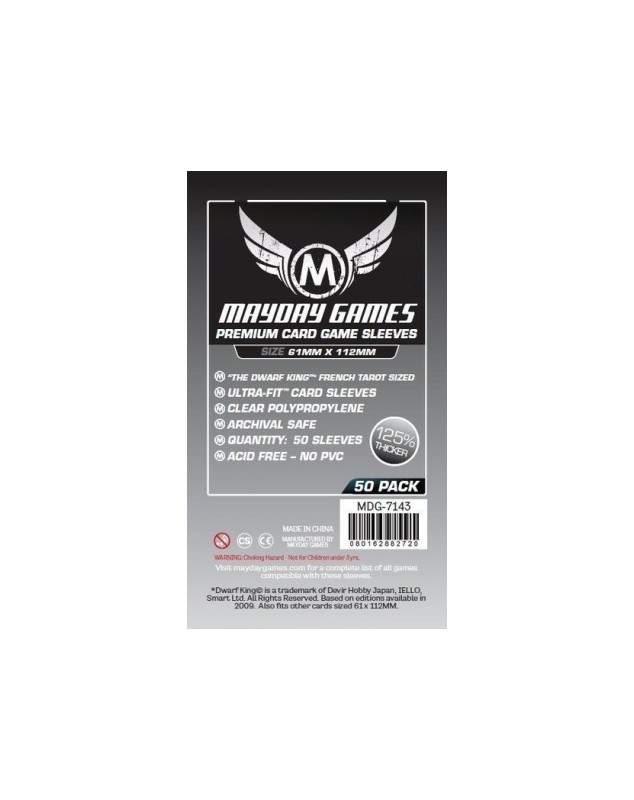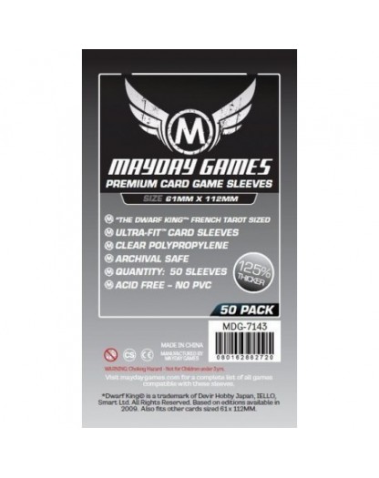 Pack de 50 fundas transparentes para que las cartas de tus juegos estén protegidas. Tamaño "The Dwarf King French Tarot" (61 x 112 mm)