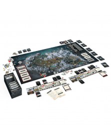 6 miniaturas de jugador, 8 dados de habilidad, 1 dado de Enemigo, 4 cubos de Salud, 4 cubos de Aguante, 4 cubos de Magia, 18 cubos de Armadura, 12 fichas de Límite de medidor, 4 fichas de Golpe final, 72 fichas de Habilidad, 42 fichas de Experiencia, 42 fichas de Oro, 72 fichas de Componentes, 100 fichas de Amenaza, 24 indicadores de Misión, 12 indicadores de Misión de jugador, 1 ficha de Jugador inicial, 4 fichas de Caballo, 1 ficha de Milicia de Ulfric, 34 fichas de Monstruo errante, 4 paneles de personaje, 1 tablero de juego, 1 reglamento, 1 libro de tutorial/escenarios, 297 cartas de Misión, 54 cartas de Mazmorra, 67 cartas de Encuentro, 25 cartas de Seguidor, 6 cartas de Personaje, 196 cartas de Objeto, 46 cartas de Encantamiento/Mejora, 40 cartas de Estado, 68 cartas de Evento, 20 cartas de Naturaleza, 20 cartas de Población, 6 cartas de Reto de Mazmorra, 4 cartas de referencia.