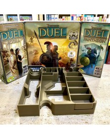 Este inserto hará que te quepan en la caja del juego base todos los componentes de 7 Wonders Duel y de sus dos expansiones: Pantheon y Agora.