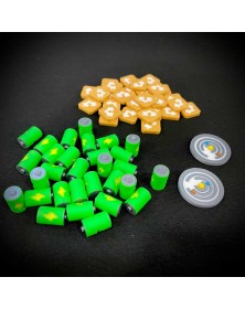 El kit incluye 30 pilas de energía, 30 fichas de crédito y 2 indicadores de órbita impresos a todo color para que alucines mientras juegas 😜