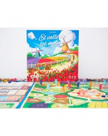 En El valle de los molinos, un juego inspirado en la Ruta de las flores, hasta 4 jugadores adoptáis el papel de agricultores y empresarios de tulipanes. Construirás y mejorarás tus molinos de viento, buscarás nuevos bulbos de tulipanes gracias al comercio exterior o entre los vendedores locales para comprarlos y plantarlos, y tratarás de obtener ventaja con ayudantes y contratos lucrativos. ¡Que tus competidores se pongan verdes de envidia al admirar tus campos en flor!