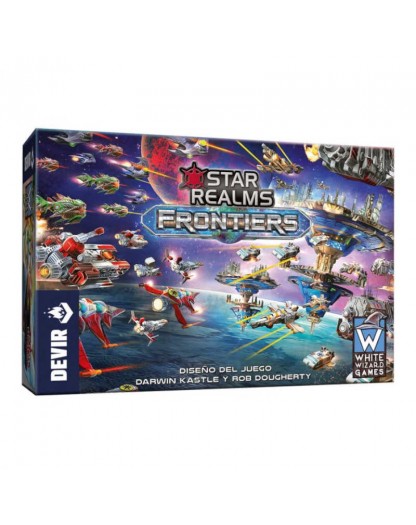 Star Realms Frontiers es un juego independiente dentro del universo de cartas coleccionables Star Realms, que no obstante puede combinarse con Star Realms y Star Realms: Colony Wars. En este juego, hasta cuatro jugadores tienen que hacer todo lo posible por conseguir la victoria ¿Lograrás mantener tu imperio estelar en lo más alto? ¡Incluye un modo solitario y cooperativo!