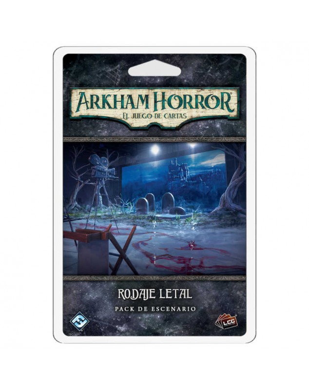 ¡Vive el terror del cine mudo en Rodaje letal, el nuevo escenario para Arkham Horror: El juego de cartas! Enfréntate a horrores desatados en los platós del Estudio C mientras exploras tres géneros cinematográficos diferentes. Juega en solitario o intégralo en tu campaña como una historia secundaria cargada de suspense y acción.