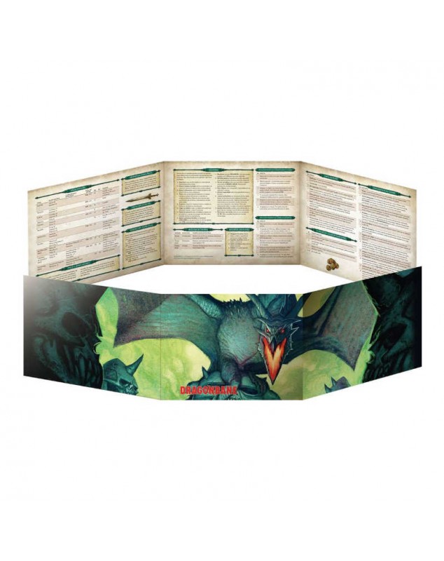Una pantalla de lujo en formato apaisado para el JdR de Dragonbane. La pantalla muestra una espectacular ilustración de Johan Egerkrans en el exterior y una gran cantidad de tablas e información útil en el interior, al tiempo que mantiene los planes del director de juego a salvo de los ojos de sus jugadores.