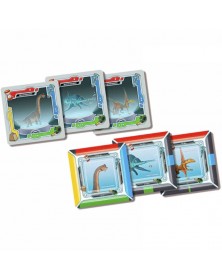 DinoLore es un juego de Lorenzo Tarabini basado en el sistema Lore, que permite comparar elementos de forma gráfica sin recurrir a números. En DinoLore encontrarás 60 cartas cuadradas de dinosaurio (los DinoBit) y una carta de referencia. Una de las caras de las cartas de DinoBit muestra la ilustración en cuerpo entero de un dinosaurio. La otra muestra 4 áreas coloreadas que se corresponden con las 4 características del dinosaurio: altura (azul), longitud (verde), peso (amarillo) y antigüedad (rojo).