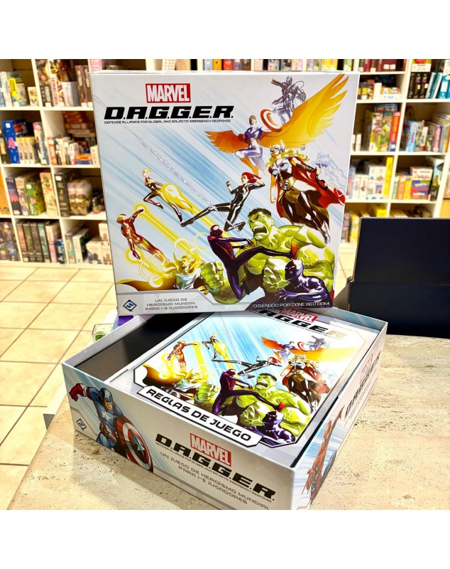 Marvel D.A.G.G.E.R es un juego de mesa cooperativo de 1 a 5 jugadores con 14 años o más y que ofrece partidas de unos unas 3-4 horas aproximadamente.